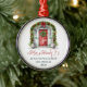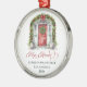 Primeiro Natal Monogrammed Novo Ornamento Doméstico, Crie um belo e elegante presente para celebrar seu Natal de 1rua em sua nova casa. Aquarela com alegre porta vermelha e verde floral de férias para celebrar a época de Natal. Monograma com endereço e data. A tipografia Elegante Script diz New Home.