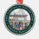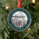 Celebre a alegria de seu novo lugar com uma foto personalizada "Primeiro Natal em nossa Nova Casa", um ornamento de metal branco e verde redondo. Todo texto nesta modelo é simples de personalizar. (DICAS DE IMAGEM e DESIGN DE TEXTO: 1) Para ajustar a posição do texto, adicione espaços no início ou no fim. 2) Para centralizar a foto exatamente como quiser, recorte-a em forma quadrada antes de carregá-la no site do Zazzle.) Design verde e branco festivo apresenta o nome e o ano da tipografia minimalista na moda e uma fotografia da sua escolha. Esta familia única adiciona um toque elegante à decoração da casa do Natal ou faz uma ideia pensativa de presente de realeador de casas. Não há lugar como uma nova casa para as férias!