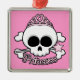Crânio de princesa bonita e ossos cruzados com texto de tiara, varinha e PRINCESS.
