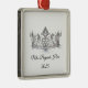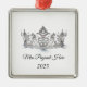 This silver-colored premium metal ornament is shown with a sparkling silver crystal tiara with black text on a white background.