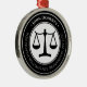 Ornamento personalizável exclusivo com escalas pretas de símbolo de justiça e endereço ao seu redor. Excelente para estudantes de Direito ou para todos os que você digita lá fora para celebrar a lei!