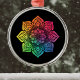 Esta mandala colorida do arco-íris no design preto irá adicionar mistério e cor ao seu decoro de férias ou qualquer exibição ornamental. Se você ou seu ente querido gosta de atenção, meditação, ou yoga, este design pode ser o toque certo. Uma mandala é um símbolo geométrico que foca padrões em torno de um centro. É frequentemente usado em várias tradições espirituais para focar atenção e meditação. Também pode representar autointrospecção, unidade e harmonia.