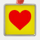 Simples coração vermelho quente em fundo amarelo vívido. Ideia gráfica de decoração projetada. Forma estética comumente usada para representar amor, apoio, laços estreitos, amizade e admiração.