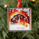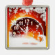 Um ornamento prateado com uma imagem festiva de um relógio com o tempo se aproximando da meia-noite num desvio de neve em amarelo-ombre e vermelho. Consulte a coleção inteira de Pedidos de Ano Novo na categoria HOME na seção HOLIDAYS.