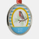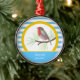 Robin Redbreast personalizável ornamentos cerâmicos ou metálicos com um pássaro giro assado em círculo amarelo e padrão listrado azul e branco. presente de excelente para pássaro, amantes de os animais não só para o Natal.