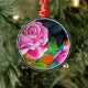 Ornamento De Metal Rosa Rosa com arte de aquarela laranja