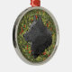 Um esboço bonito de Schipperke contra um fundo de uma coroa de Natal.