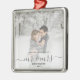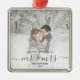 Comemore o primeiro Natal do seu casamento com este belo ornamento moderno do keepsasasaame. O texto da cinza de carvão diz "Nosso primeiro Natal como Sr. & Sra.", com as palavras "Sr. & Sra." em um roteiro elegante com flores antes e depois. Substitua a imagem de exemplo por sua foto favorita e adicione seu sobrenome e o ano. Um filtro de gradiente branco ajuda a fazer o pop de texto.