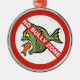 Sinal proibido por causa de peixe zangado intimidando um pequeno.