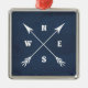 Ilustração de compasso com setas e decoração norte, leste, sul e oeste sobre fundo azul-verde
