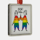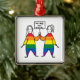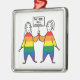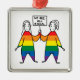 Este trabalho de arte apresenta duas mulheres arco-íris com uma ideia e um sinal.
