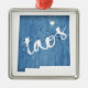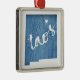 Localizado na base das montanhas Sangre de Cristo no alto deserto do Taos, o Novo México tem um resort de esqui de classe mundial e atividades intermináveis no exterior. Esta bela design é o mapa do Novo México com um padrão de madeira azul dentro e texto cursivo.
