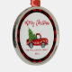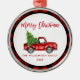 Manuscrito em Pincel Moderno - Caminhão Vermelho Vintage Vintage com Árvore de Natal - Ornamento Feliz de Natal - Xadrez Vermelha