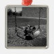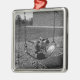 Este ornamento apresenta uma imagem de um dinossauro Tiranossauro (T-Rex) em um conjunto de balanço de playground, perfeito para o amante dos dinossauros.