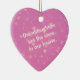 Este é um maravilhoso ornamento de Namorados para uma avó dar a uma neta. Ele apresenta seu texto personalizado em um bonito fundo de confete rosa de corações e estrelas. Atualmente, o lado frontal diz "Avós são as estrelas nos nossos corações" em rosas claro, com o lado traseiro segurando o nome do seu filho e a sua mensagem. Todo o texto é totalmente personalizável, então você pode fazê-lo dizer o que quiser. Este é um presente especial que sua neta vai tesourar para sempre.