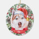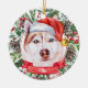 Este sofisticado Enfeites de natal cerâmico apresenta uma aquarela de um belo Rouco com pelo castanho e branco em um chapéu de Papai Noel, cercado por verduras, pinecones e bagas de férias, com um banner vermelho com o nome do seu animal de estimação (ou mude para Feliz Natal). Você pode personalizar completamente esta design mudando a saudação e o ano atrás em uma fonte elegante. Este é um Enfeites de natal, ainda que barato, personalizado, e é perfeito para amantes de Roucos, amantes de cachorros, ou amantes de animais de estimação.