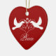 Duas pombas brancas carregar ramos de azeitona neste Enfeites de natal elegante e pacífico. É completamente personalizável. Altere o texto e/ou a cor do plano de fundo, se desejar.