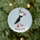 Ornamento de Puffin em fundo de neve, com texto personalizável em ambos os lados.