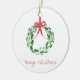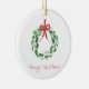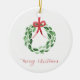 Uma coroa de Natal clássica é o sotaque perfeito para qualquer presente ou árvore. Este ornamento apresenta meus designs originais de aquarela e caligrafia.