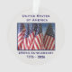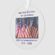 Declaration of Independence on back, 250th Anniversary 1776 to 2026, United States of America, Christmas Tree Ornament. America 250 - A great milestone for the USA! Photo of American flags waving in the wind, and patriotic text make this a wonderful keepsake - a once in a lifetime event! Great Christmas acrylic ornament. Change to 250th Anniversary or 250th Birthday, your choice. All Rights Reserved © 2025 Alan & Marcia Socolik.