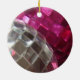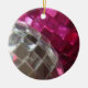 Uma coleção de bolhas de Natal cor-de-rosa e prateada. Ornamento com um design personalizável cor-de-rosa, prata, preto e branco para você personalizar com seu próprio texto, imagens e ideias. Criado com uma fotografia original e técnicas digitais por Jess Perry.