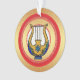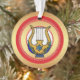 Adjunto, o ornamento da árvore Jesse é a árvore Jesse "David's Harp". A harpa de forma de Lyre é o símbolo do 13 do advento com o verso das escrituras de 1 Samuel 16: "encha a buzina com óleo, e vá, eu te mando para Jesse a Bethlehemite: porque eu me dei um rei entre seus filhos." Uma ilustração da harpa de David com uma decoração de Estrela de David. Ilustração colorida para um Calendário Avançado da Árvore Jesse. Ouro com aspecto de folha.