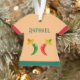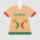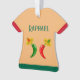 Este adorável ornamento apresenta um par de chilis, um chili vermelho e um chili verde. Ambos têm olhos pretos e bocas cor-de-rosa. Cada Chili está vestindo um chapéu sombrio que tem um crânio de cor oposta ao dos chili em comemoração ao Dia Mexicano do Festival dos Mortos, Dia De Los Muertos. O sombrero também contém três flores com pétalas vermelhas e verdes alternadas representando a bandeira do México. Há texto personalizado na frente e atrás para que você possa incluir um nome e uma mensagem.
