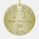 Redemoinhos florais dourados, folhas e ornamento do aniversário de casamento dos corações 50th