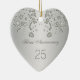 Redemoinhos florais de prata, folhas e ornamento do aniversário de casamento dos corações 25o
