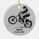 Dirt Bike Rider Ornament Christmas 20xx em fundo de cinza prateada. Todo texto personalizável, frente e verso! Para alterar a cor de fundo, selecione personalizar, editar e criar plano de fundo!