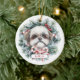 Ornamento do Círculo Cerâmico do Cão Shih Tzu de Natal