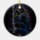 Fotografia alterada para abstrato brilhante de perfil de uma banda marchante feminina uniforme, segurando seu chapéu de penas em uma mão e um clarinete na outra.