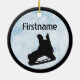 Vamos enfeite sua árvore de Natal com paixão pelo hóquei! Personalize este ornamento de hóquei no gelo para oferecer como presente e decorar sua casa. Design da frente: fundo azul de gelo + "Feliz Natal" + 2 palitos e um golpe num círculo preto Design de trás: fundo azul de gelo + skate de hóquei + personalização com o nome do jogador de hóquei ou fã - num círculo negro