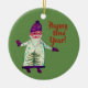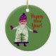 decoração de Ano Novo com desenho de Papai Noel. Cor de fundo e texto personalizados.
