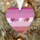 Travesseiro do Ornamento do Coração com corações nas cores da bandeira do orgulho lésbico no batom, com a bandeira do orgulho lésbico no batom ao fundo