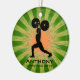 Pesar Elevador de Ornamento Natal 20XX. Levante o peso contra um fundo verde e laranja de explosão. Todo texto personalizável, frente e verso!