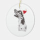 Um harliquin feliz great dane em um chapéu do papai noel para decorar sua árvore ou mesmo seu espelho retrovisor. O dobro tomou partido.