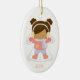 Este ornamento cerâmico oval do feriado do Natal tem uma menina bonito fazer um anjo da neve. Na parte inferior, você pode facilmente personalizar o ano. Design de Sanqunetti