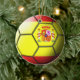 Bandeira da espanha gravada através de uma bola de futebol em um ornamento cerâmico frente e verso.