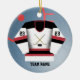 Personalize este ornamento do jérsei do jogador de hóquei com seus número e nome da equipe na parte dianteira e na sua parte traseira do nome e do número sobre. Faz um grande presente para seu jogador de hóquei favorito ou igualmente faz um grande presente da equipe. Excelente para o segundo grau e presentes internos da liga de hóquei!