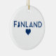 Este ornamento apresenta as cores nacionais da Finlândia, com um mapa do país e um dentro de coração! A design é impressa em um lado do ornamento.