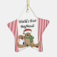 O ornamento customizável do feriado da lembrança do design do urso de ursinho do melhor namorado do mundo caracteriza um urso de ursinho com luzes do feriado e um boné de meia e uma área na parte de trás do ornamento onde você pode facilmente a personalizar com um nome e um ano ou uma data ou o outro texto!