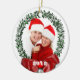 Faça seus próprios enfeites de natal com uma grinalda coberto de neve e um arco vermelho e espaço para que você introduza sua foto de família. Ornamento do Natal 2012