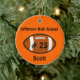 Enfeites de natal de futebol personalizado feito em ornamento laranja redondo, com nome e número de camisa em preto num ícone de futebol. Personalize o nome ou texto para atender às suas necessidades. Faz um bom ornamento para crianças ou seu jogador de futebol.
