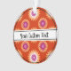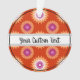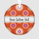 Enfeites de natal com um padrão de flores geométrico sem soldadura nas cores da bandeira do orgulho lésbico - cor-de-rosa, branco e laranja - design de orgulho lésbico em um fundo laranja; com um campo de texto editável para seu nome ou mensagem; uma forma excelente de decorar sua árvore de Natal: D