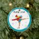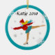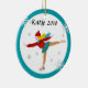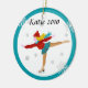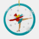 Estes enfeites de natal do divertimento caracterizam um gráfico de um patinador de gelo na parte dianteira e na parte traseira. A imagem é cercada por uma beira da cerceta. Na parte dianteira é um espaço para uma mensagem ou um nome feito sob encomenda.