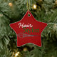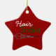 Ornamento vermelho e verde bonito do feriado para cabeleireiros! O presente dado forma estrela tem as tesouras de um vintage gráficas com rotulação verde e branca do cabeleireiro. Este ornamento do salão de beleza do desenhista faz o presente perfeito para empregados. A parte traseira da estrela é verde com flocos de neve e as tesouras vermelhos do vintage.