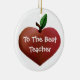 O ornamento cerâmico redondo doce com trabalhos de arte gráficos de um coração deu forma à maçã, em ambos os lados. O texto lunático branco lê, ao melhor professor, na parte dianteira, e personalizado, com nome dos professores e texto adicional, na parte traseira. Personalize o texto para ler qualquer coisa que você quer. Grande ornamento que da árvore de Natal todo o professor apreciará.
