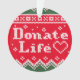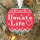 Aqui está uma pequena maneira de encorajar pessoas durante a época mais sagrada do ano a doar vida. Aqui está uma design de suéter de malha de Natal "costura" diretamente em um ornamento, uma design para celebrar o Natal e o presente da vida. Um Enfeites de natal de transplante perfeito para os feriados! É uma bela maneira de os receptores de transplantes promoverem a doação de órgãos. Esta design de um suéter de Natal tricotado, um ornamento festivo de doador de órgãos de férias, parecerá excelente na sua árvore. Um presente de excelente para receptores de fígado, coração, pulmão e rim. Feliz Natal e obrigado! - Kristin n'Steve, KNS Gear e a Loja de Natal KNS