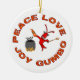 Comemore o Natal com sabor verdadeiro de Louisiana com estes enfeites de natal originais. Os ornamento caracterizam um lagostim do cozinhar do Gumbo cercado pelo slogan "paz, amor, alegria, Gumbo" em um lado. Lance o ornamento para encontrar um símbolo da flor de lis do ouro em um fundo do vermelho do Natal. Visite www.zazzle.com/enchantedbayou hoje para todos seus cartões temáticos de Cajun, de Louisiana e de Nova Orleães, convites e presentes!